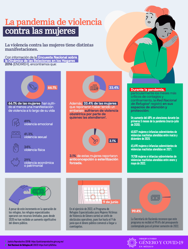 Las organizaciones que integramos el Observatorio Género y COVID-19 en México, con el apoyo de la GIZ México y su Proyecto para el Fortalecimiento de las Organizaciones de Sociedad Civil (PROFOSC), fortalecimos internamente nuestras capacidades sobre el procesamiento de datos y realizamos las siguientes infografías: